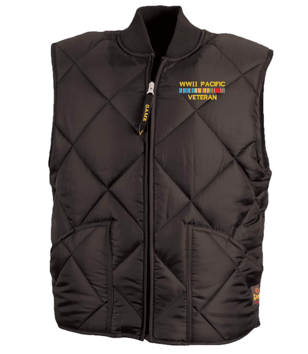 MilitaryBest is expanding our line of apparel with this quality WWII Pacific Veteran Game Sportswear Finest Vest. This vest will make an excellent addition to your wardrobe or a quality gift. All custom embroidery is performed at our facilities in Scottsboro, AL.