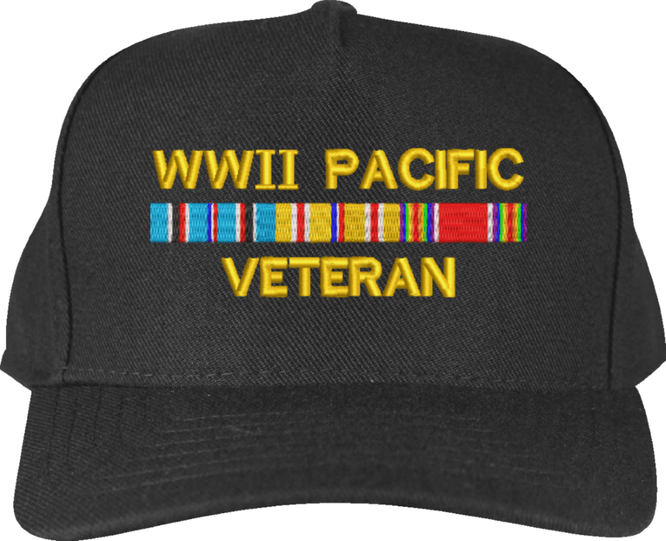 MilitaryBest is proud to offer this fine WWII Pacific Veteran War Conflict Ribbon Cap. This WWII Pacific Veteran War Conflict Ribbon Cap is embroidered at our facilities in Scottsboro, AL by skilled craftsmen with a passion for patriotism. Your satisfaction is guaranteed!Cap Features: